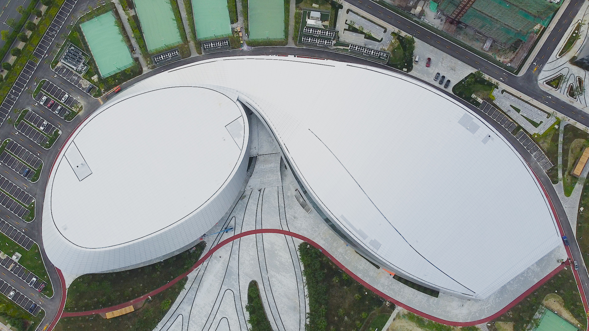 有别于传统的体育馆,苏州湾体育中心由体育馆、游泳馆和商服楼三个单体组成,是集体育健身和商业广场为一体的的复合型体育综合体。自2018年奠基开工以来,该项目一直备受瞩目。