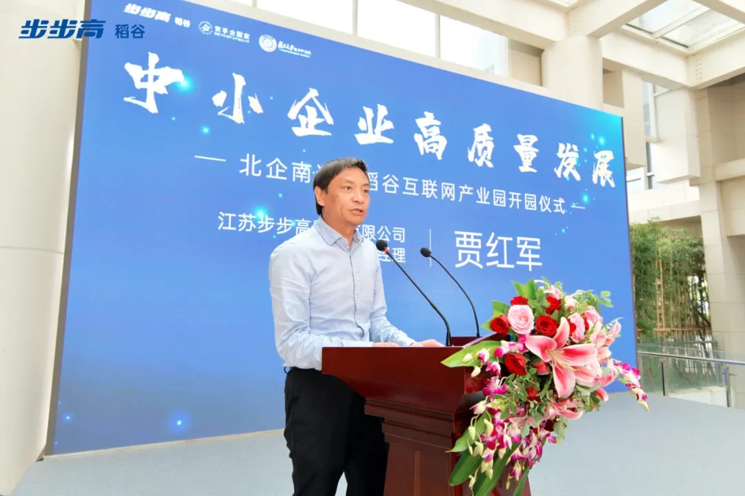 开园仪式上,江苏步步高置业有限公司总经理贾红军致辞:“我们将秉承步步高诚信、本分的企业文化,与合作伙伴在人才、资金、技术、服务、市场五大方面合作。每一家选择稻谷的企业都是对我们难能可贵的信任,唯有不断地努力做好园区的服务,才能不负这份信任。”