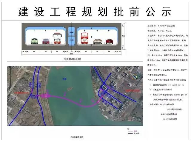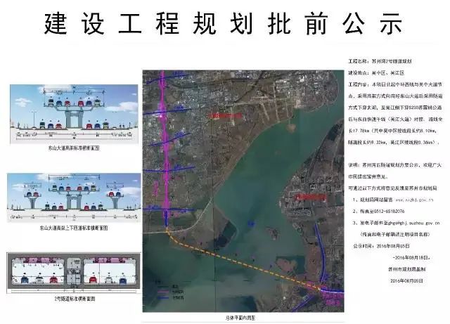 规划显示,苏州湾隧道(苏州湾1号隧道)项目西起吴中区五湖路交叉,向东沿旺山路采用隧道方式下穿湖滨路、太湖大堤及太湖,至吴江侧后与高新路对接,在春江路东侧接地,与湖光路及S230辅路平交。