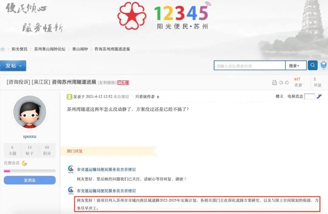 苏州湾隧道已经列入苏州市跨区域道路2022-2025年实施计划,目前各相关部门正在深化道路方案研究,力争尽早开工。