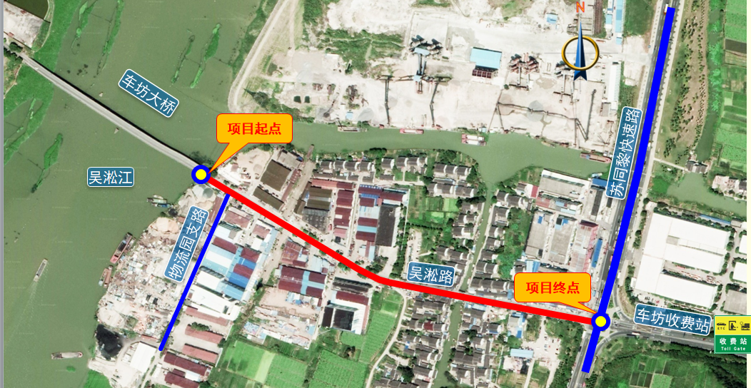 星塘街南延工程,起于车坊大桥主桥东侧,以高架桥形式,向东上跨苏同黎公路地面道路,止于车坊收费站前。